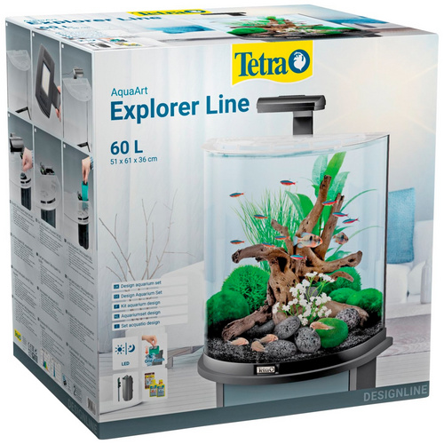 Tetra AquaArt Evolution Line LED Aquarium-Komplett-Set 100 Liter anthrazit (moderne LED Beleuchtung, integrierte Tag-Nachtlichtschaltung, gebogene Frontscheibe)
